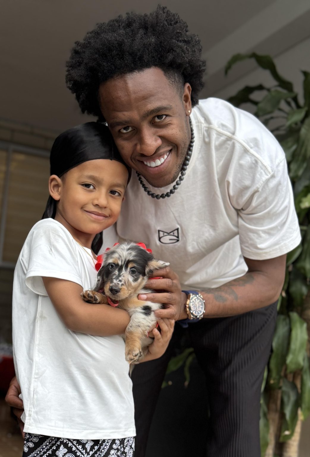 “En la cancha defiendo mi escudo, pero en casa, Milo defiende mi corazón. Es más que un perro, es mi compañero de vida, mi fan número uno y mi motivación diaria. Gracias, Salchichas Colombia, por este campeón de cuatro patas. El nuevo hincha del Santos ”
